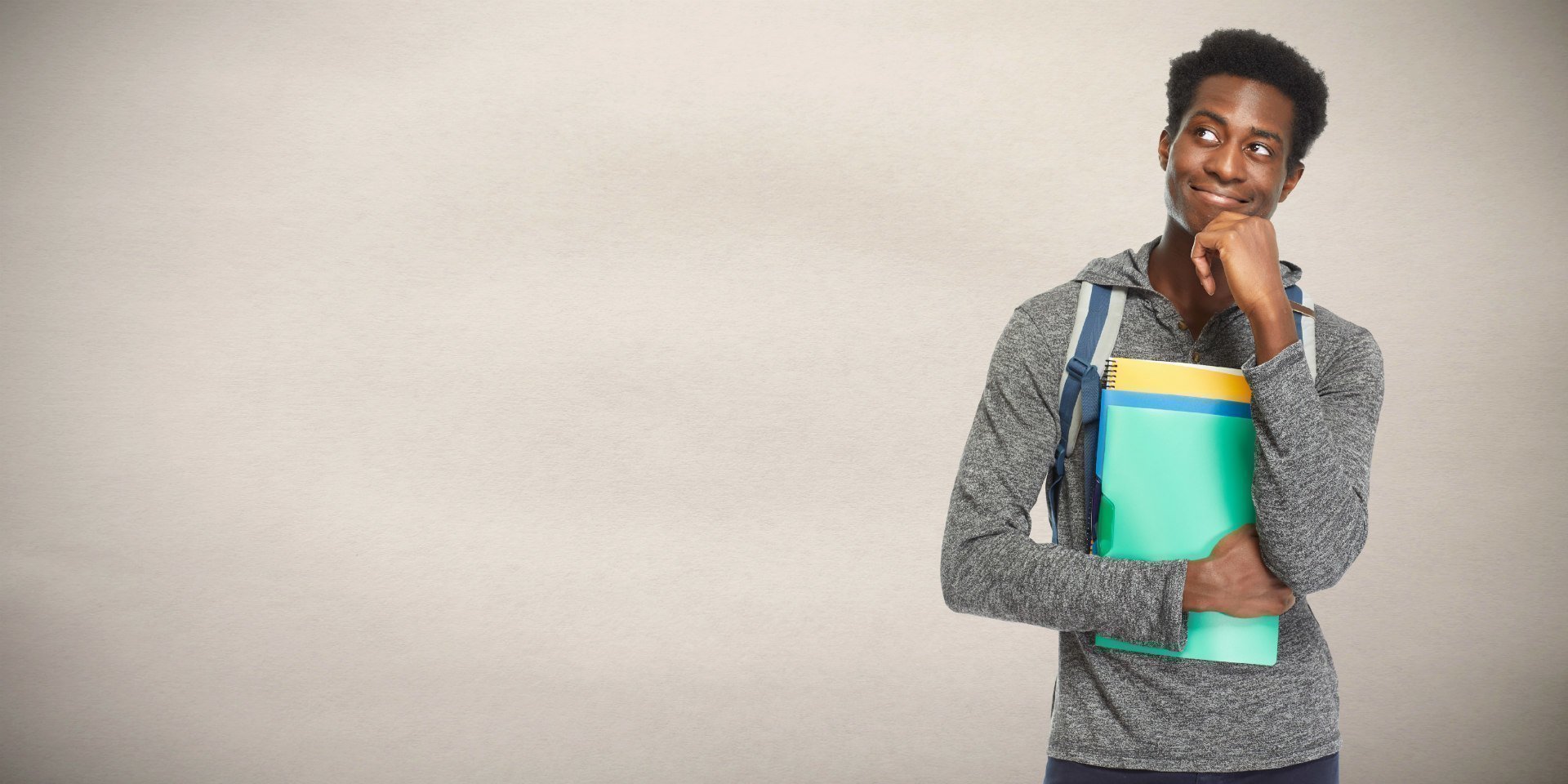 Thinking young afro american student man. Education concept.
